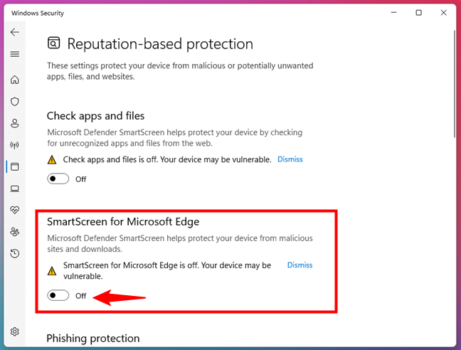 Schakel de phishingbeveiliging van SmartScreen uit