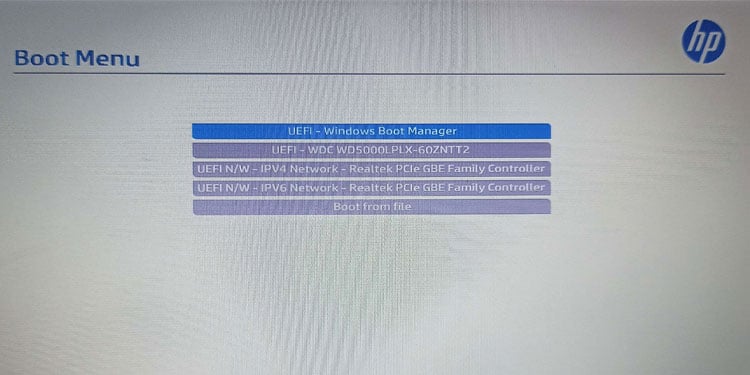 Zodra u zich in het opstartmenu bevindt, ziet u een lijst met apparaten die op uw systeem zijn aangesloten. Kies er een om het systeem op te starten met het geselecteerde opslagapparaat.