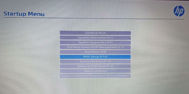 Helaas is dit niet het geval voor alle HP-laptops. Als de F9-toets u niet naar het opstartmenu brengt, moet u de opstartmenutoets vinden met behulp van het opstartmenu. Het opstartmenu geeft u de lijst met instellingen met de bijbehorende functietoets. Dit omvat ook het opstartmenu.