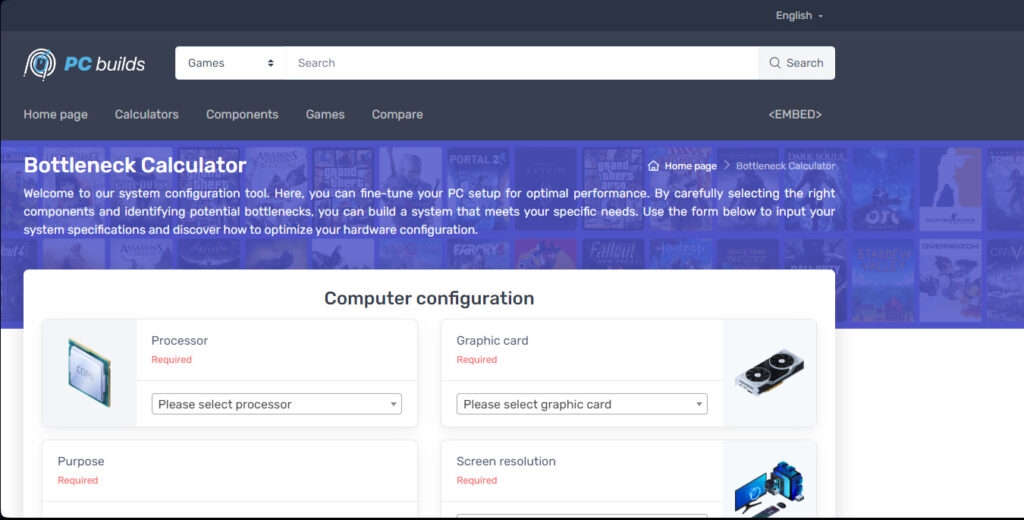 Dette verktøyet estimerer potensielle flaskehalser i spill, videoredigering og generell bruksscenarier ved å legge inn informasjon om den valgte CPU, GPU og RAM. Selv om det ikke er perfekt, gir det en rask og enkel måte å identifisere maskinvareubalanser på.