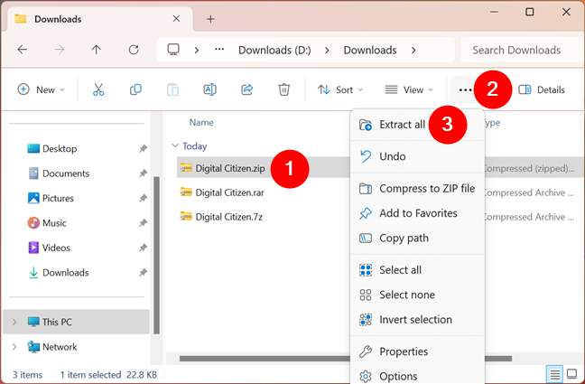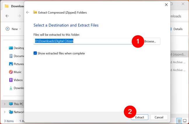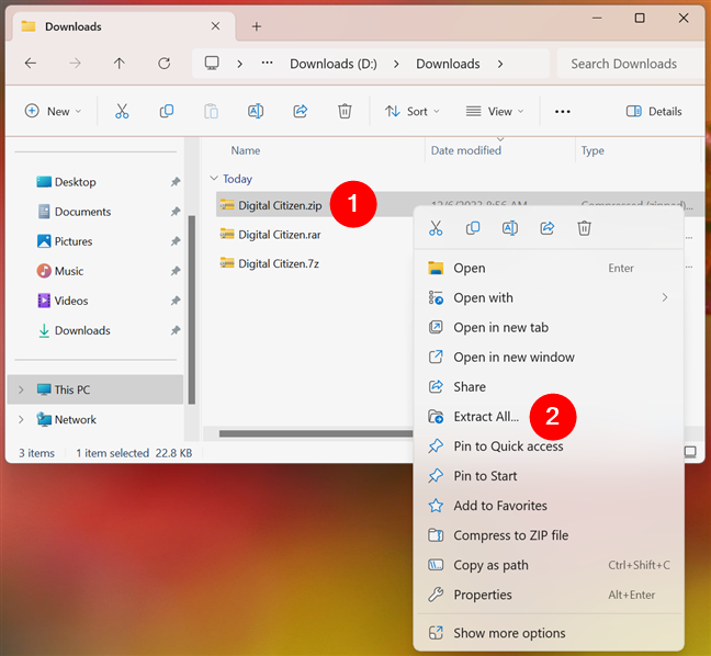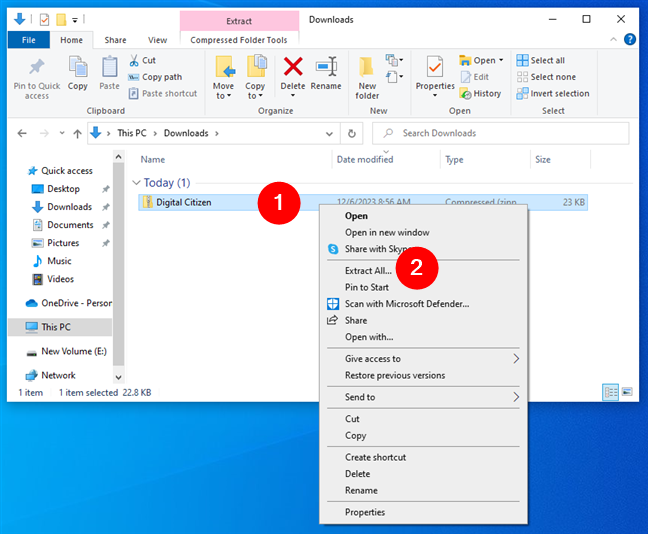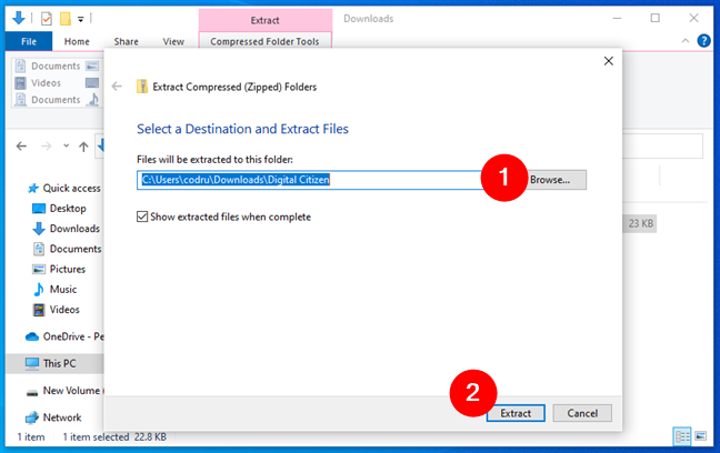 Slik pakker du ut filer i Windows (med innebygde verktøy)-Digital Citizen UP