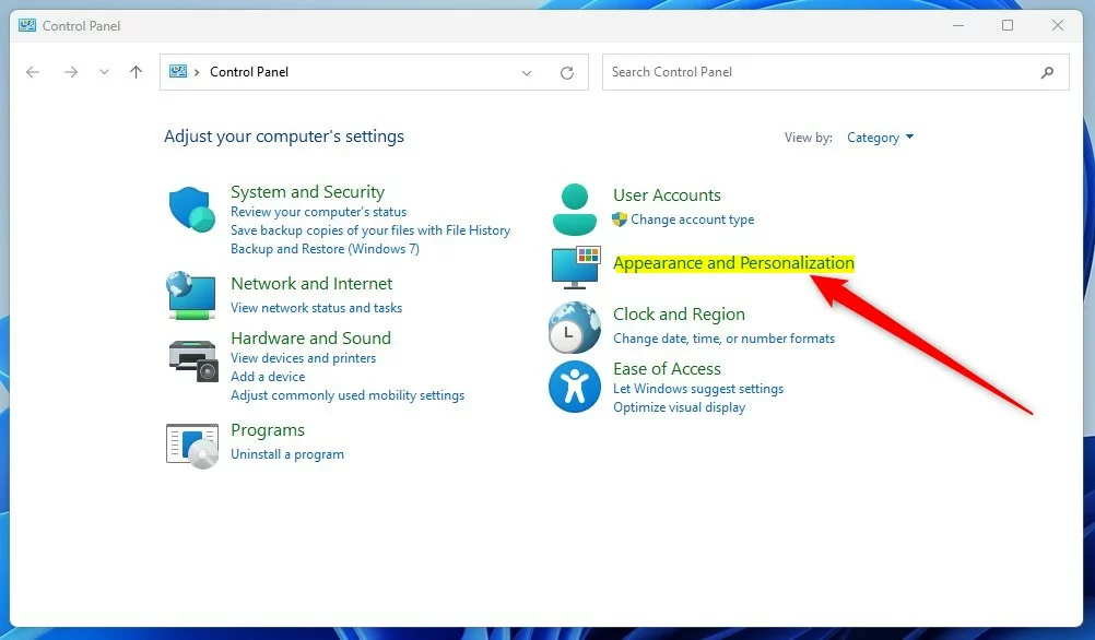I Kontrollpanel-appen velger du koblingen Utseende og personalisering.