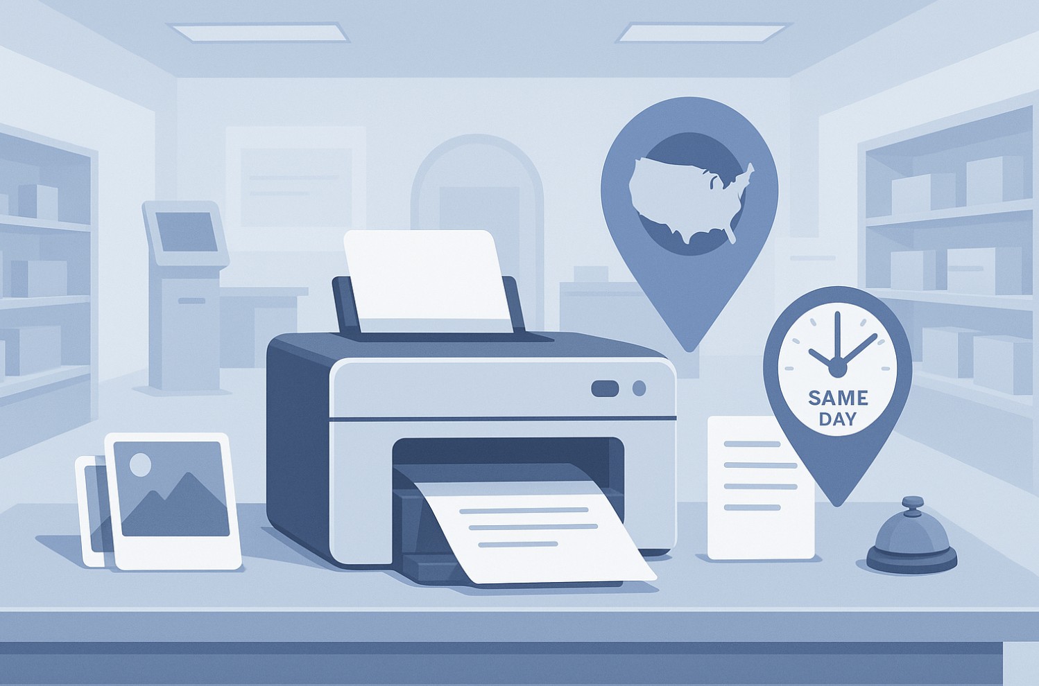 Trenger du utskrifter i dag? Her er de viktigste amerikanske kjedene som fremdeles tilbyr walk-in eller samme dags henting for bilder, dokumenter, plakater og markedsføringsmateriell-pluss hva hver enkelt er best for og hva du kan forvente i skranken.