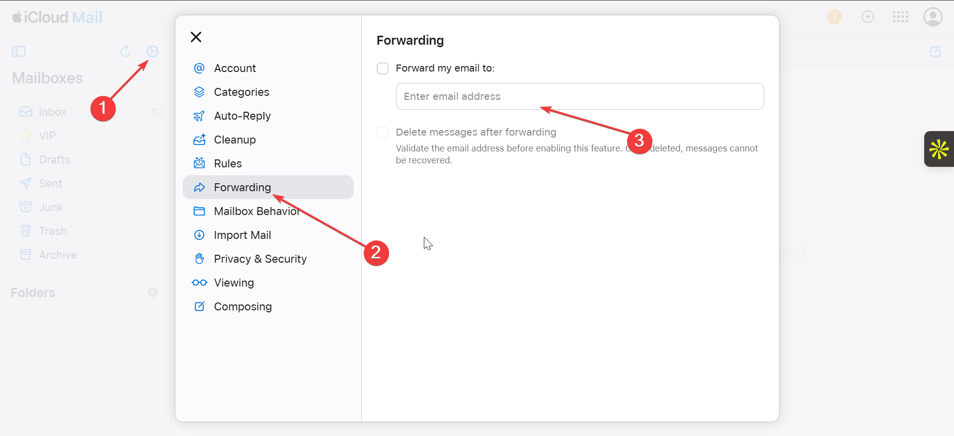Hvis du vil videresende iCloud-e-poster til en annen konto, slik at du kan motta e-posten din mens du er på farten, går du til iCloud.com og klikker på Mail-appen. Klikk nå på Innstillinger-ikonet øverst til høyre og velg Videresending i venstre rute. Til slutt, skriv inn din foretrukne videresendings-e-postadresse og lagre. Kan ikke logge på: Kontroller at du skriver inn riktig Apple-ID og passord. Hvis du har glemt passordet ditt, tilbakestill det ved å gå til iforgot.apple.com. Hvis du har aktivert tofaktorautentisering, sørg for at du har mottatt bekreftelseskoden og skriv den inn riktig. iCloud-e-post synkroniseres ikke: Sørg for at Mail er aktivert i iCloud-innstillingene dine på alle enheter. Hvis synkronisering fortsatt ikke fungerer, prøv å slå iCloud Mail av og på igjen i innstillingene. Sjekk også internettforbindelsen din for å sikre at den er stabil. iCloud-post lastes sakte inn: Hvis iCloud Mail tar lengre tid enn vanlig å laste, kan du prøve å tømme nettleserens buffer eller starte Mail-appen på nytt. Sørg for at enhetens programvare er oppdatert, og sjekk at det ikke er kjente strømbrudd med iCloud-tjenester. Kan ikke få tilgang til iCloud-e-post på tredjeparts e-postklienter: Sørg for at du har angitt riktig IMAP-og SMTP-innstillinger i tredjeparts e-postklient. Besøk Apple Support-siden for den nyeste serverinformasjonen. Det kan også være lurt å sjekke om e-postklienten din støtter iClouds to-trinns autentisering eller appspesifikke passord. iCloud Mail-appen krasjer: Hvis iCloud Mail-appen fortsetter å krasje, prøv å starte enheten på nytt. Sørg for at appen er oppdatert til siste versjon. Hvis problemet vedvarer, avinstaller og installer appen på nytt, eller tøm appens buffer hvis mulig. Dobbeltsjekk at Mail er slått på i iCloud-innstillingene på alle enhetene dine for jevn synkronisering. Hvis du bruker en Mac eller iPhone, bør du vurdere å bruke den innebygde iCloud Mail-appen for bedre integrering og raskere tilgang. Hvis du ikke kan logge på, kan du prøve å tilbakestille Apple ID-passordet eller bruke Apples tofaktorautentisering. Hvordan gjenoppretter jeg iCloud-e-postpassordet mitt? Hvis du har glemt passordet ditt, går du til iforgot.apple.com og følger trinnene for å tilbakestille det. Kan jeg få tilgang til iCloud-e-post på Android? Mens iCloud-appen er tilgjengelig på Android-e-post, er du ikke tilgjengelig på Android nettleser ved å besøke icloud.com. Hva hvis iCloud-e-posten min ikke synkroniseres på tvers av enheter? Sørg for at du er logget på iCloud med samme Apple-ID på alle enheter, og at e-postsynkronisering er aktivert i iCloud-innstillingene. Kan jeg bruke tredjeparts e-postklienter med iCloud Mail? Ja, du kan konfigurere tredjeparts e-postklienter som Outlook eller Thunderbird med iCloud-e-posten din ved å bruke de riktige IMAP-og SMTP-serverinnstillingene levert av Apple. >Sammendrag