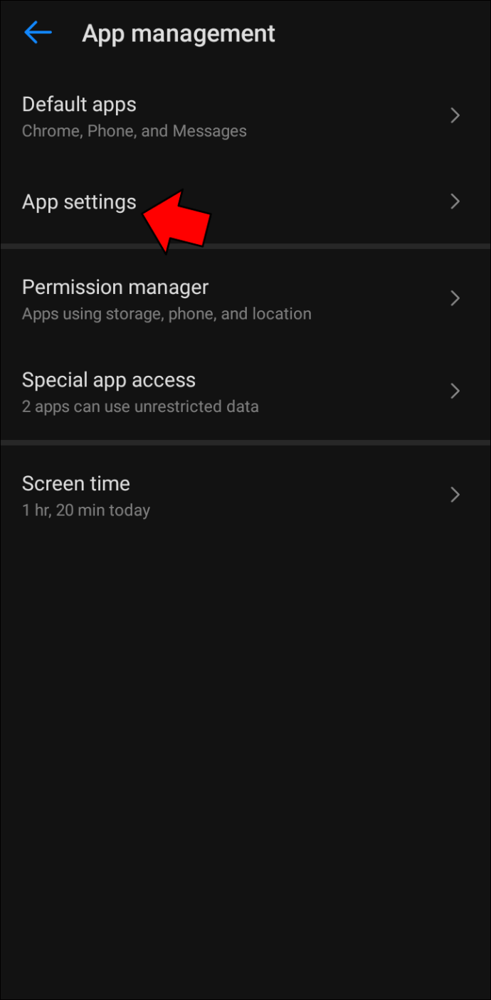 Åpne menyen og gå til innstillinger.Rull ned og gå til”Apper.”
