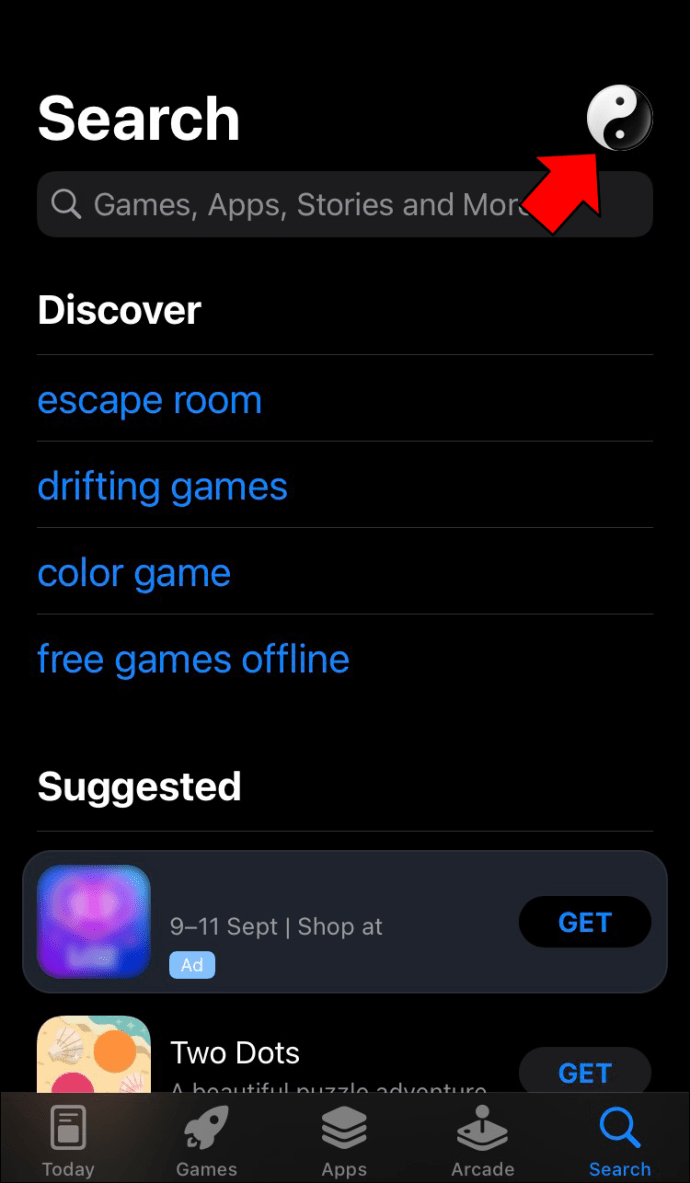 p>Åpne App Store.Velg profilbildet ditt øverst på skjermen.