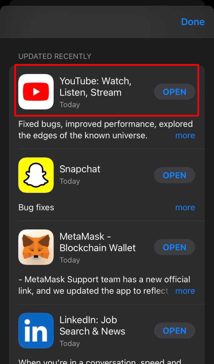 iPhone-brukere bør følge trinnene nedenfor for å oppdatere YouTube-appen.
