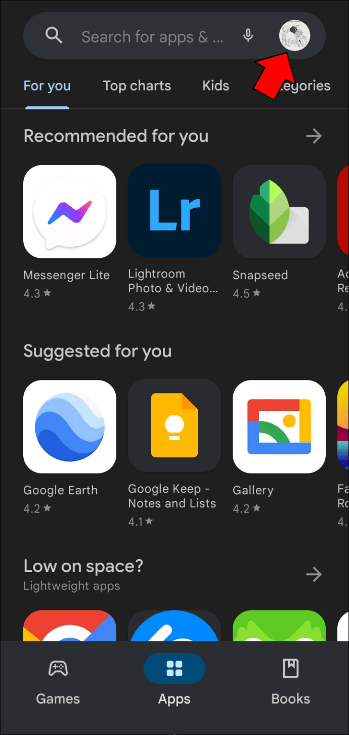 Trykk på profilbildet ditt øverst til høyre.Velg”Administrer apper og enhet.”
