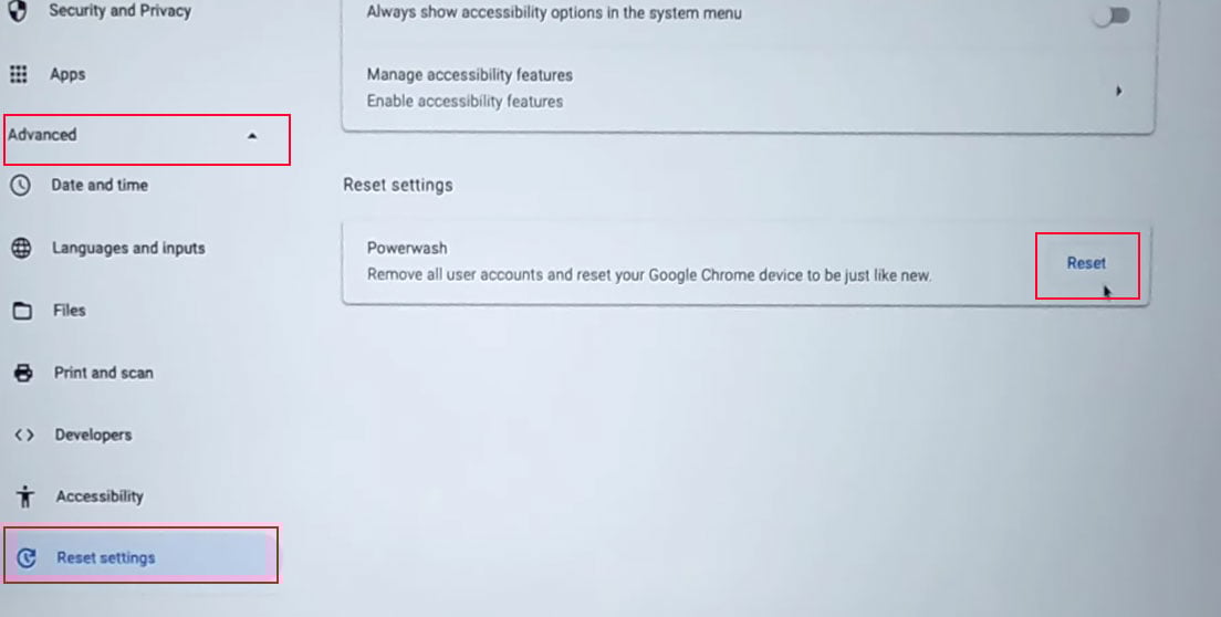 Powerwash Personal Chromebook