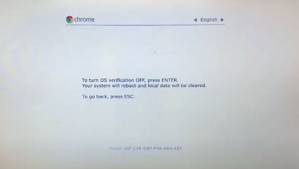 Trykk Ctrl + D. Dette vil be om en bekreftelsesmelding for å aktivere utviklermodus. Nå trykk Enter eller Mellomrom avhengig av hva forespørselen sier for å slå av OS-verifisering. Dette betyr at du nå er i utviklermodus. Systemet vil nå starte på nytt.