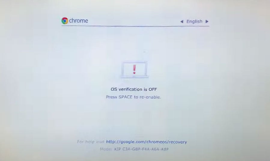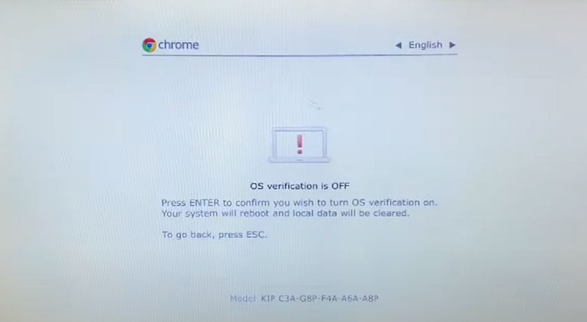 Når du kommer til OS-verification-is-OFF-skjermen, trykker du mellomrom for å aktivere den på nytt.