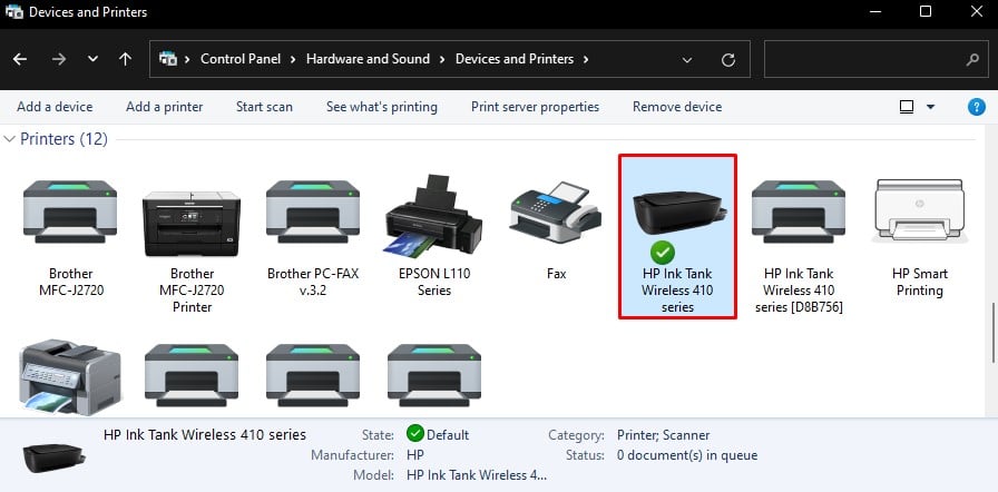 Po pierwsze, umieść dokument, który chcesz zeskanować, na płycie skanera drukarki. Skieruj stronę do skanowania w dół i umieść ją prawidłowo, pozostawiając marginesy z boku. Następnie zamknij pokrywę skanera. Teraz naciśnij jednocześnie klawisze Windows i R na klawiaturze. Wpisz kontrolne drukarki i naciśnij Enter. Znajdź swoją drukarkę HP i kliknij ją dwukrotnie.