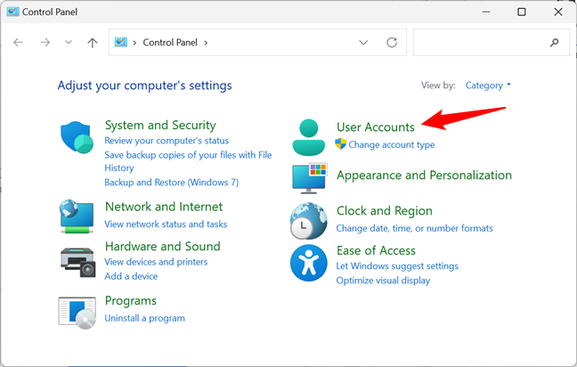 Staromodna metoda, której można użyć do uzyskania listy aktywnych kont użytkowników, polega na otwarciu Panelu sterowania. Po uruchomieniu przejdź do Kont użytkowników.