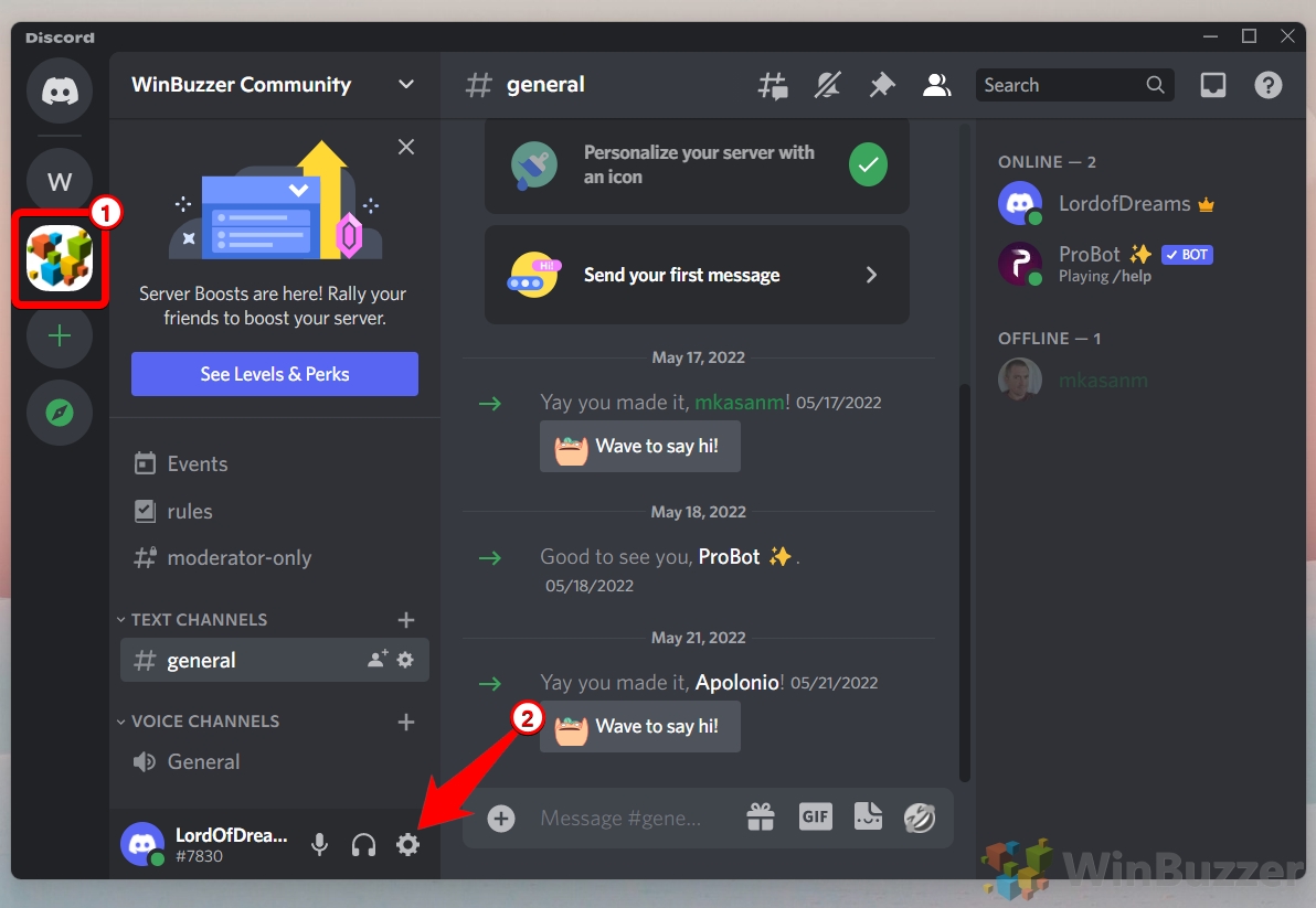 Musisz być członkiem serwera, który umożliwia zmianę pseudonimu. Niektóre serwery mogą mieć tę opcję wyłączoną lub ograniczoną do określonych ról. Musisz mieć pozwolenie na zmianę nicku na serwerze. Możesz sprawdzić swoje uprawnienia, klikając prawym przyciskiem myszy ikonę serwera i wybierając „Ustawienia serwera”. Możesz poprosić administratora serwera Discord o zezwolenie na zmianę pseudonimu Discord, jeśli nie jest to włączone dla Ty. Wybierz serwer, na którym chcesz zmienić pseudonim Discord, i dotknij swojego bieżącego pseudonimu Discord