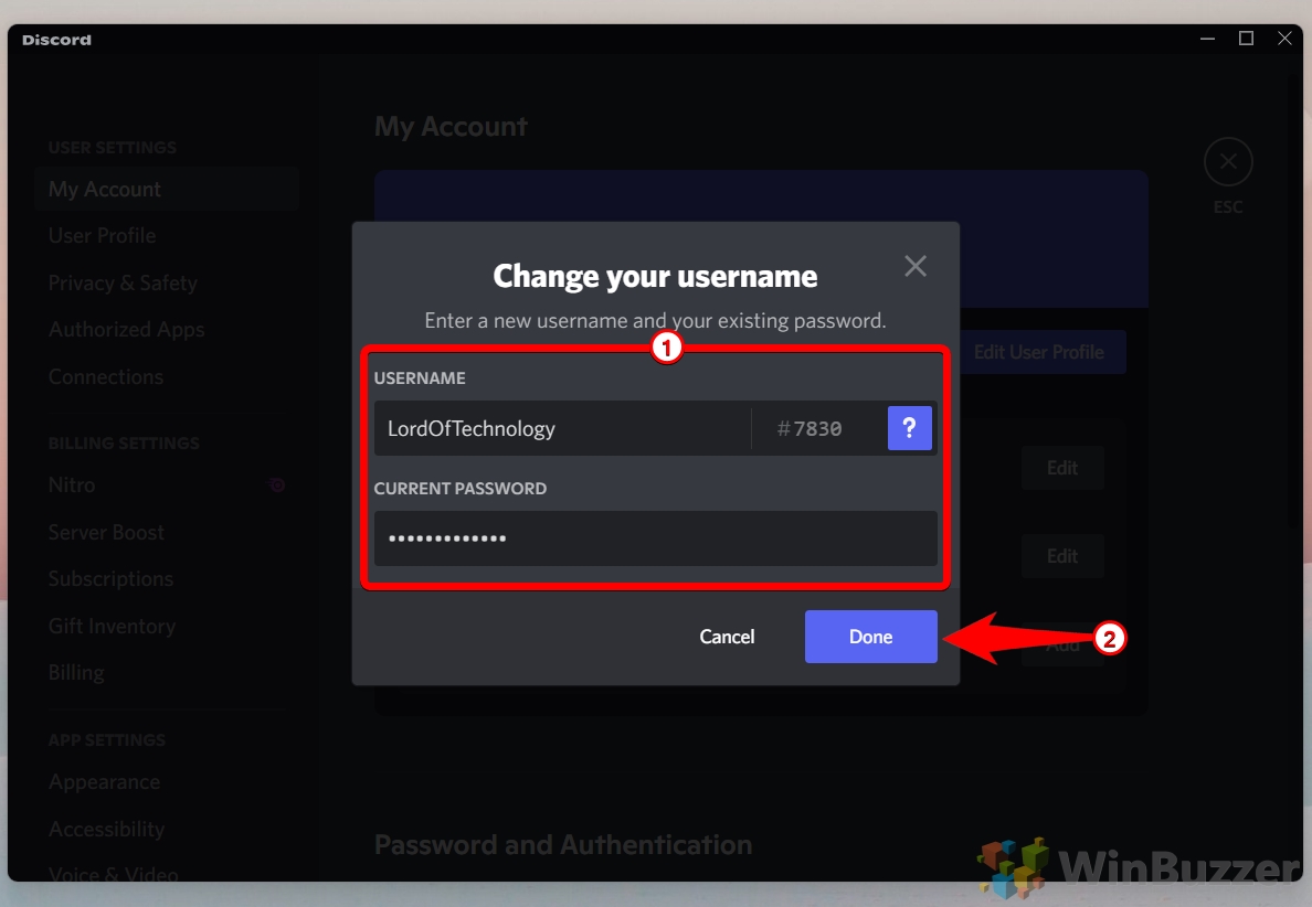 Wprowadź nowy Discord nazwę użytkownika i kliknij „Gotowe”, aby ją zapisać