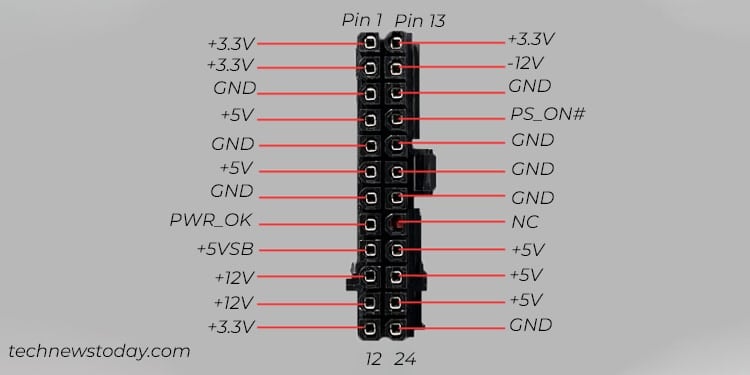 W tym artykule skupię się na funkcjonalności każdego z pinów 24-pinowego złącza zasilania ATX ale oprócz tego upewnię się, że uzyskasz ogólny wgląd w styki innych złączy.
