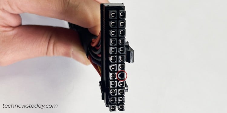 Jeśli przyjrzysz się uważnie, zauważysz, że w złączu zasilania ATX brakuje jednego ze styków (pin nr 20). W rzeczywistości jest to pin „Brak połączenia”.