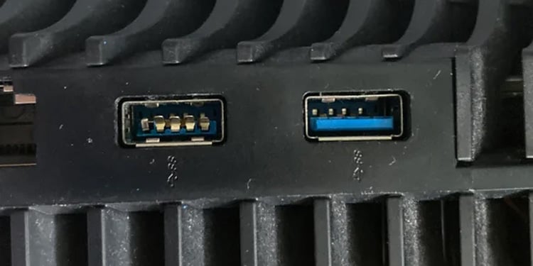 Możliwą przyczyną błędu są fizyczne uszkodzenia portów USB. Możesz sprawdzić jego wnętrze, aby sprawdzić, czy coś jest zgięte lub złamane.