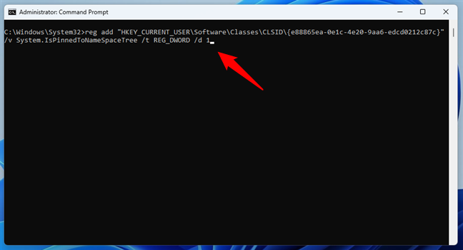 Jeśli zmienisz zdanie i chcesz ponownie dodać Galerię do Eksploratora plików , uruchom to samo polecenie, ale zamień wartość 0 (zero) na 1 (jeden), w ten sposób: