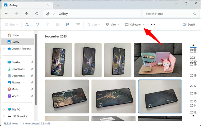 Przycisk Kolekcja w Galerii Eksploratora plików