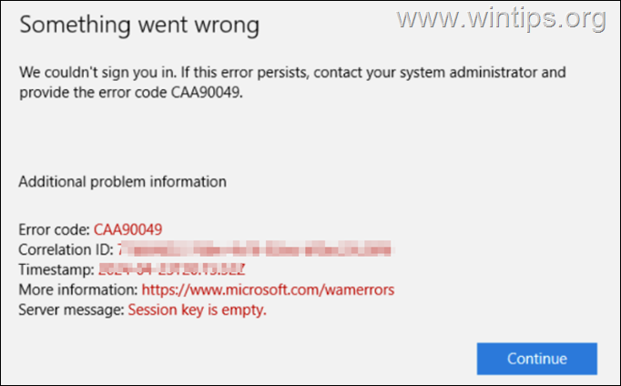 Nie mogliśmy Cię zalogować. Jeśli błąd będzie się powtarzał, skontaktuj się z administratorami systemu i podaj kod błędu CAA90049.