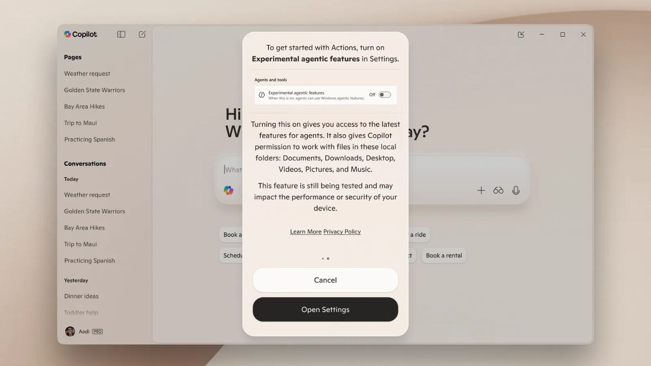 Kolejną ważną częścią Agentic OS jest Copilot Vision. Ta funkcja pozwala Copilotowi zobaczyć, co jest na Twoim ekranie i pomóc Ci w czasie rzeczywistym.