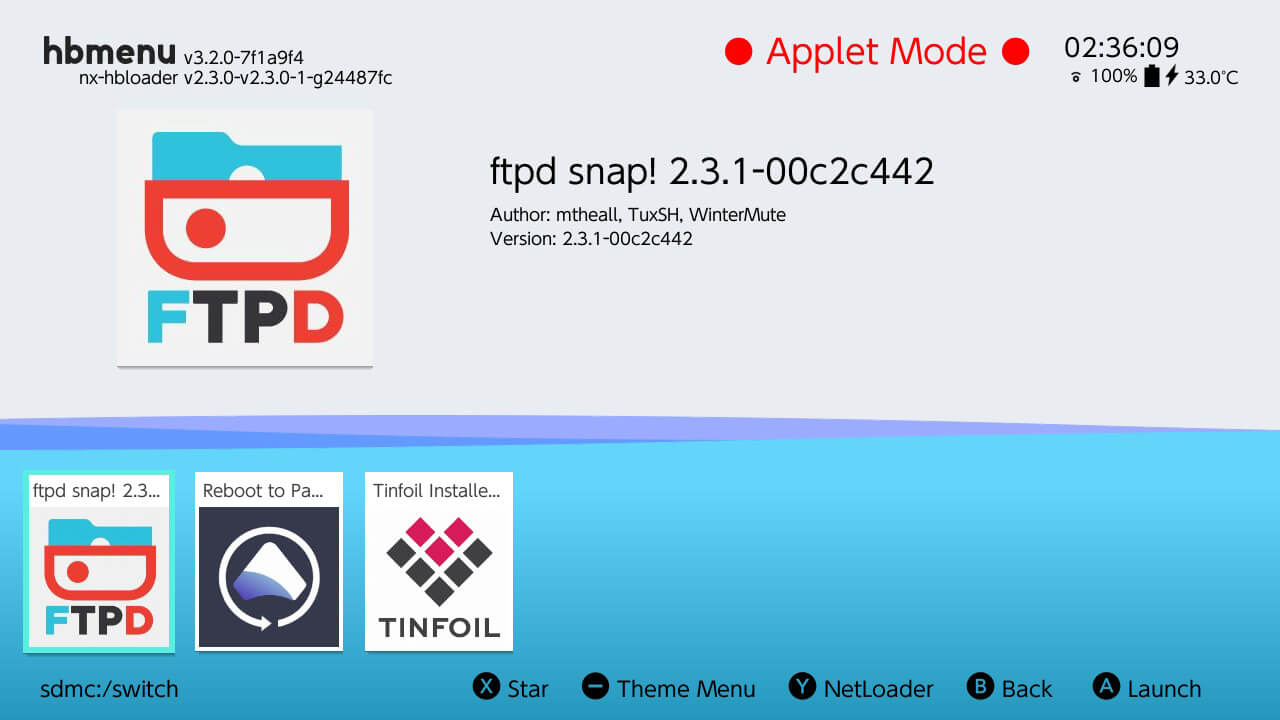 Po wstrzyknięciu ładunku Switch uruchamia się z niestandardowym oprogramowaniem sprzętowym, takim jak Atmosfera. Po uruchomieniu zapewnia tymczasowy dostęp do Homebrew Launcher, w którym możesz otwierać aplikacje, narzędzia i emulatory bezpośrednio z karty microSD.