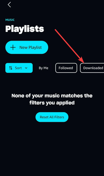 Przejdź do odtwarzacza internetowego Amazon Music i zaloguj się przy użyciu danych logowania do konta. Kliknij w Bibliotekę u góry, a następnie wybierz Listy odtwarzania na lewym pasku bocznym. Wszystkie Twoje playlisty pojawią się na przewijanej liście wraz z opcjami sortowania, np. Ostatnio i Pobrane.