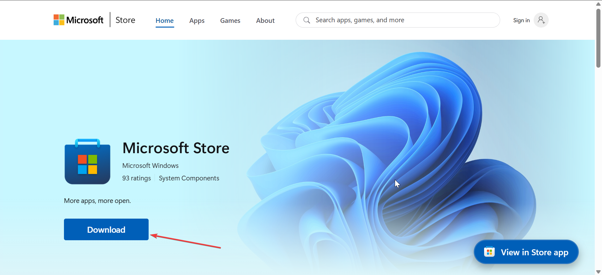 2) Pobierz lub zainstaluj ponownie Microsoft Store w systemie Windows