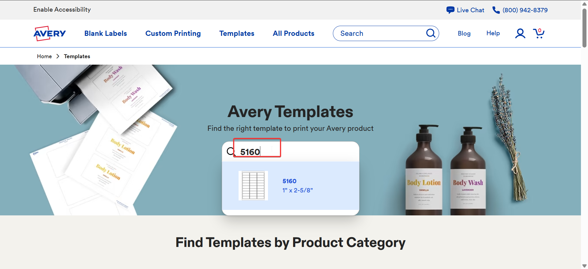 Kod produktu, np. 5160 lub 8163, znajdziesz z przodu opakowania etykiet Avery. Zanotuj to przed rozpoczęciem wyszukiwania w Internecie. Następnie przejdź do sekcji szablonów Avery, wpisz kod produktu w pasku wyszukiwania i naciśnij Enter.