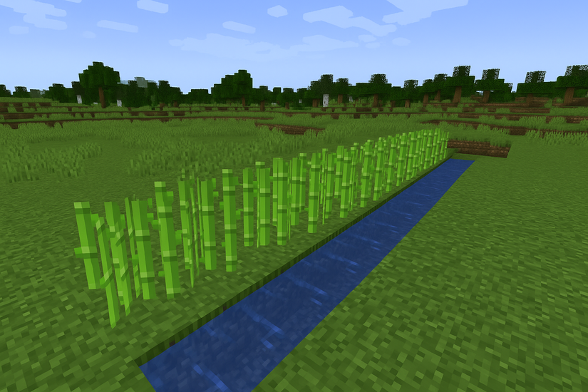 Umieść trzcinę cukrową obok wody, a następnie rozszerzaj rzędy, aż uzyskasz wystarczającą ilość do zaparzenia. Dodaj tłoki i utwórz obserwatorów później, aby uzyskać w pełni zautomatyzowaną farmę.