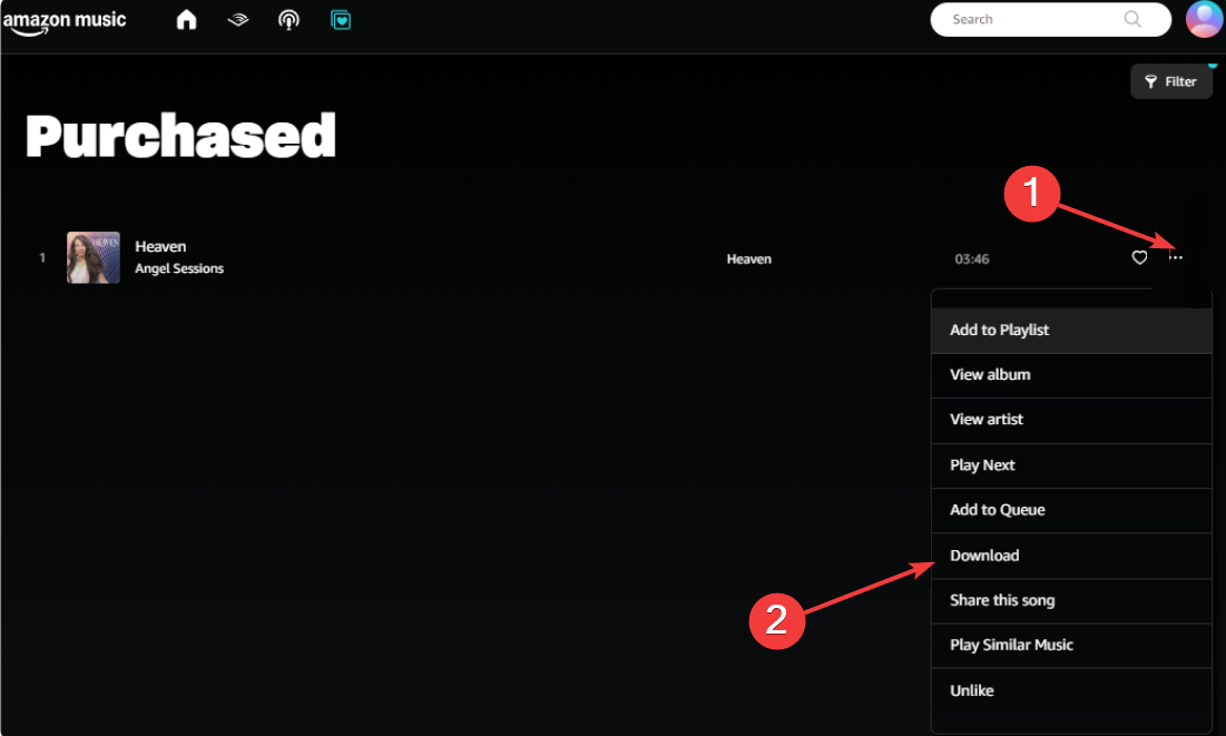 3) Pobierz zakupione Amazon Music jako pliki MP3