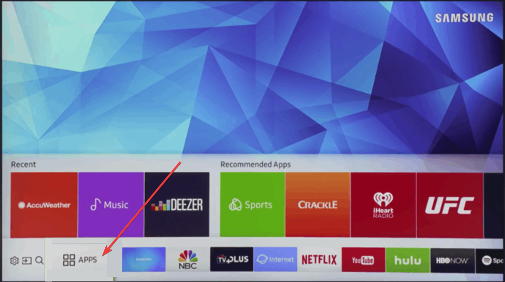 Samsung używa przycisku Początek i panelu Aplikacje. Otwórz kafelek Aplikacje, przewiń do Vudu i wybierz go, aby uruchomić ekran logowania.