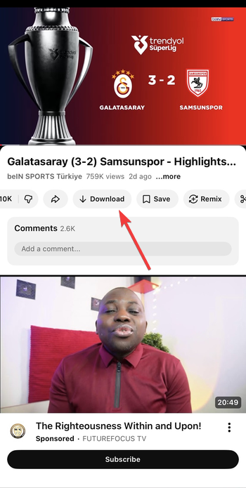 Możesz pobierać filmy z YouTube bez dodatkowego oprogramowania, po prostu korzystając z aplikacji. Wybierz film, kliknij Pobierz i wybierz preferowaną jakość. Twoje zapisane filmy pojawią się na karcie Biblioteka do przeglądania w trybie offline.