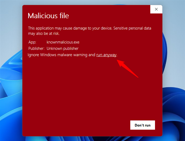 Co zrobić, jeśli wiesz, że plik zablokowany przez filtr Microsoft Defender SmartScreen jest bezpieczny i chcesz go uruchomić? Przeczytaj następną sekcję, aby uzyskać szczegółowe informacje: