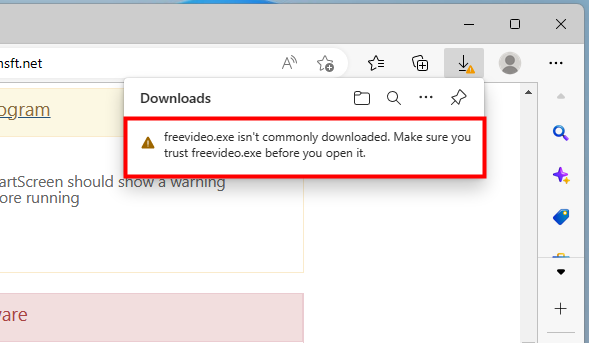 Jeśli plik, który zamierzasz pobrać, nie jest popularny (co oznacza, że pobiera go niewiele osób), filtr SmartScreen w przeglądarce Microsoft Edge powiadamia, że plik „nie jest powszechnie pobierany. Upewnij się, że [plikowi] ufasz, zanim go pobierzesz.”