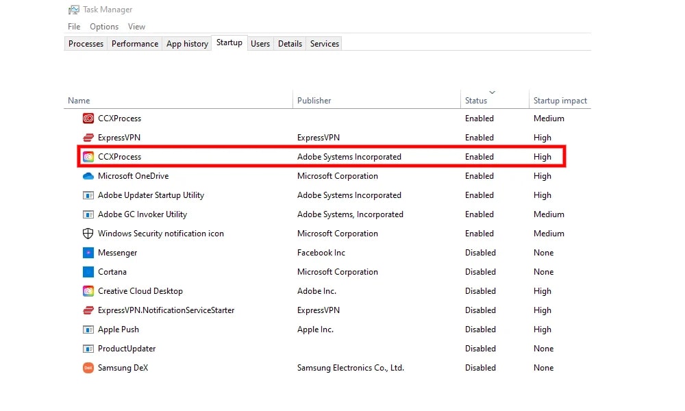 Ponieważ CCXProcess jest procesem działającym w tle, który jest wymagany tylko podczas otwierania aplikacji Adobe Creative Cloud, wyłączenie go podczas uruchamiania nie wpłynie niekorzystnie na system.