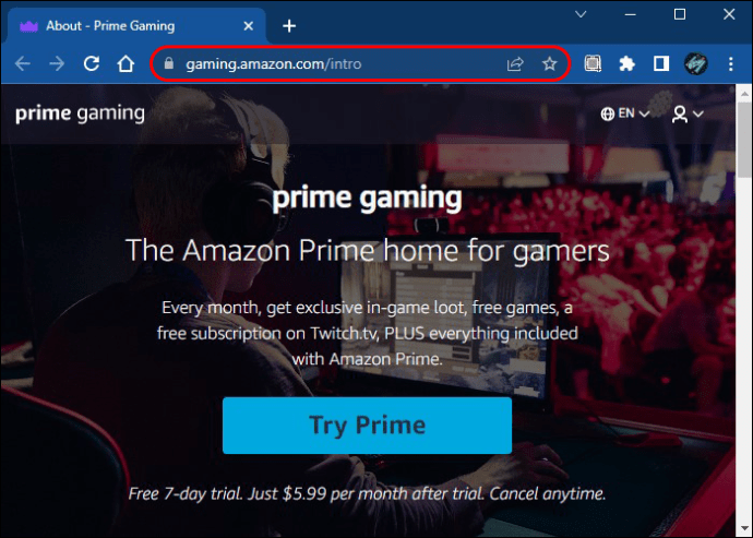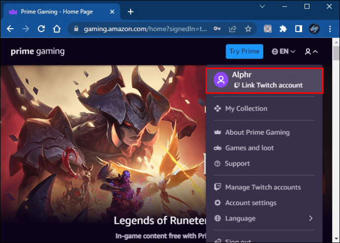 Przejdź do Amazon Twitch Prime.Zaloguj się przy użyciu danych logowania Amazon Prime.