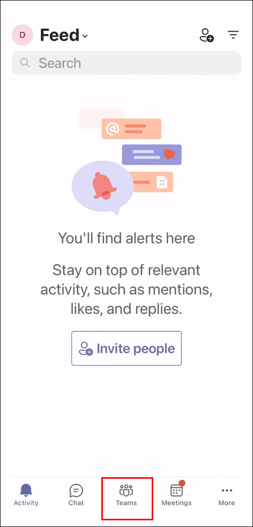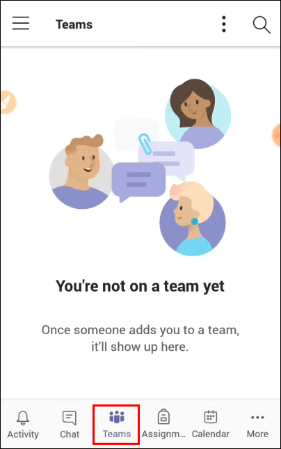 Găsiți și atingeți butonul Echipe aflat în partea de jos a ecranului.