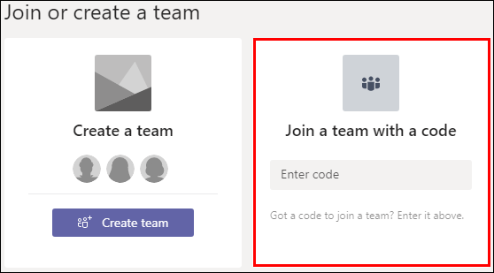 Dați clic pe Alăturați-vă unei echipe cu un cod.