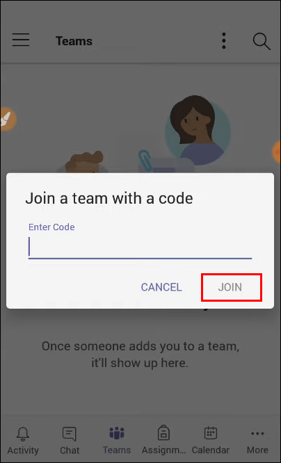 Atingeți Alăturați-vă o echipă cu un cod.