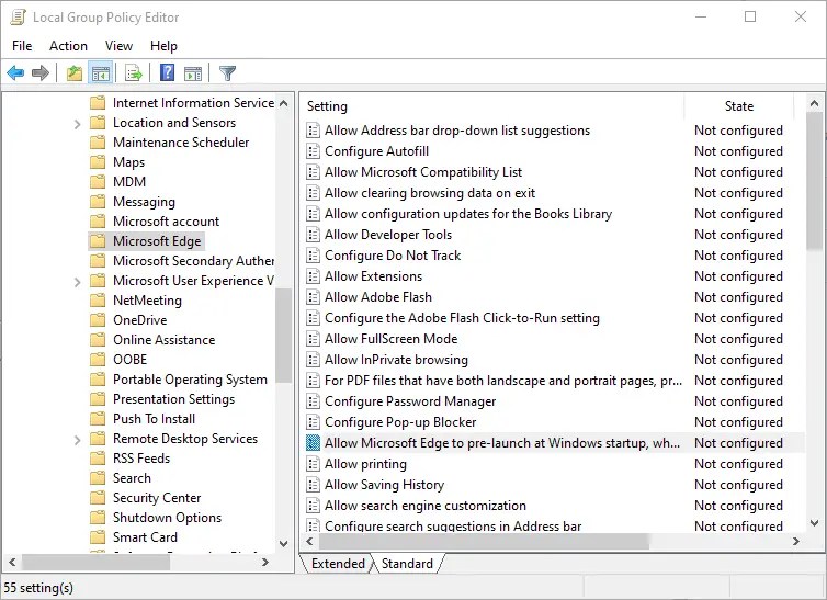 Utilizați editorul de politici de grup pentru a împiedica Edge să funcționeze în fundal