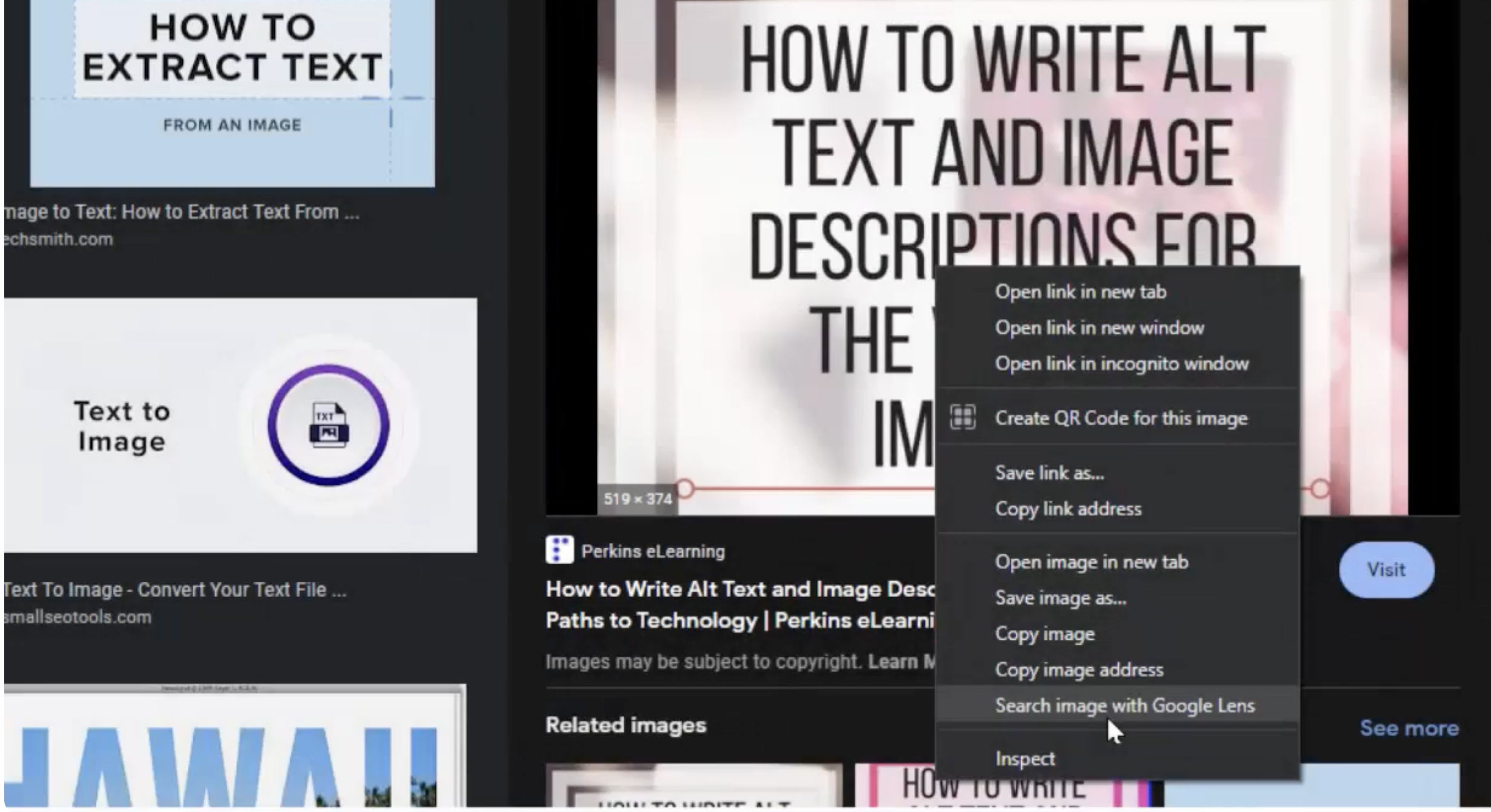 Faceți clic dreapta pe o imagine și alegeți Căutați imagine cu Google Lens.