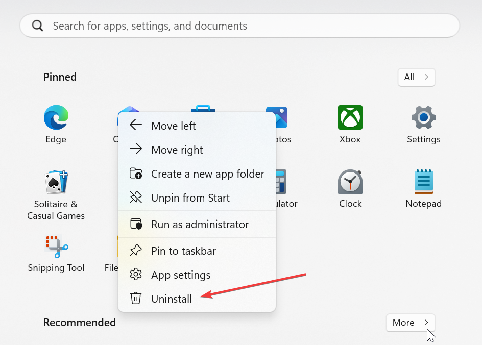 Deschideți Start și faceți clic dreapta pe tigla sau intrarea jocului. Selectați Dezinstalare și așteptați finalizarea procesului.