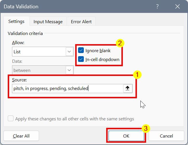 Asigurați-vă că sunt bifate casetele „Ignorați necompletat” și „Meniu derulant în celulă” și faceți clic pe „OK“.