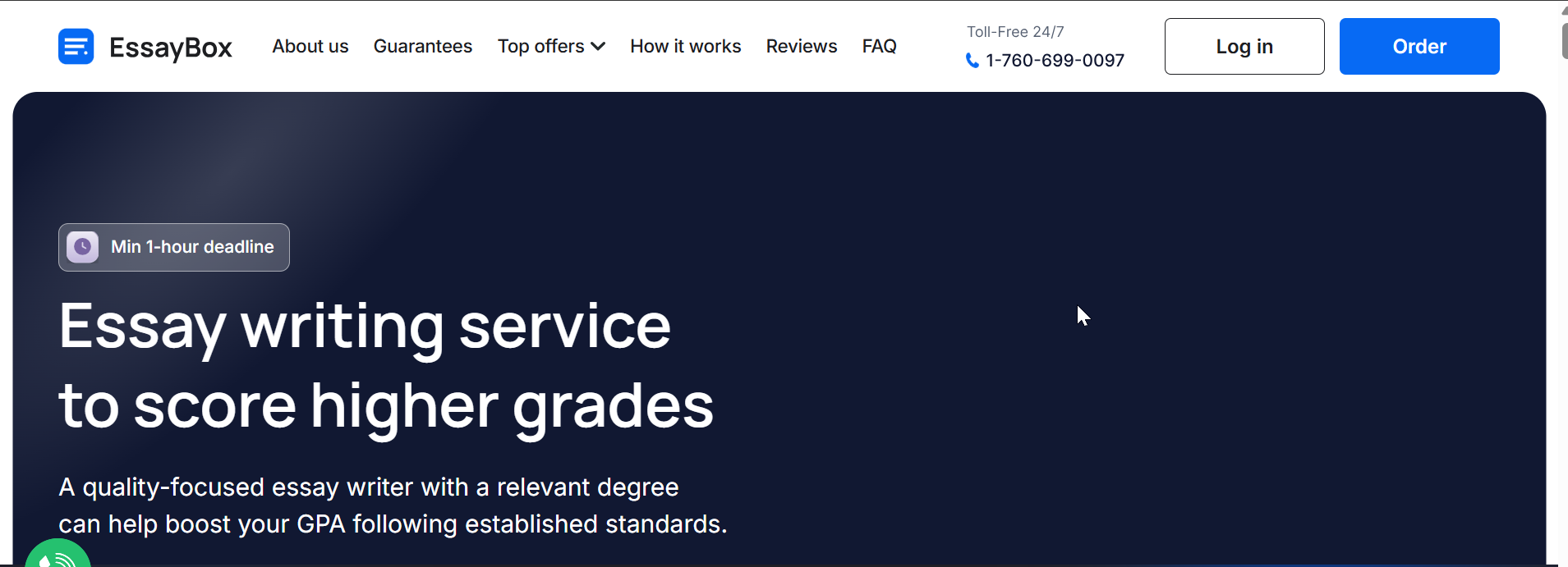 EssayBox oferă servicii de scriere academică de înaltă calitate, cu accent pe scriitorii din SUA/UK. Acest serviciu este deosebit de benefic pentru studenții internaționali care caută scriitori nativi vorbitori de engleză. Aceștia acoperă o gamă largă de subiecte și oferă eseuri personalizate, referate și rapoarte de cercetare.