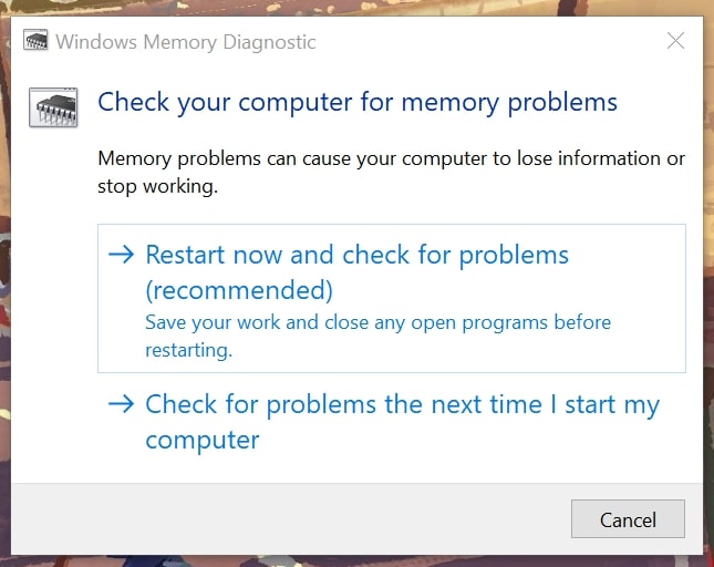 Tani, kompjuteri juaj do të riniset dhe sistemi do të kontrollojë nëse ka ndonjë problem me kujtesën tuaj. Nëse ka probleme me kujtesën tuaj, sistemi do të përpiqet t’i rregullojë ato dhe t’i zgjidhë problemet tuaja herën tjetër që të rindizni kompjuterin tuaj.