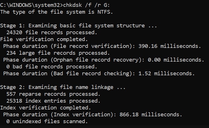chkdsk/f/r C: Kontrolloni të gjithë disqet në kompjuterin tuaj njëri pas tjetrit dhe shikoni rezultatet. Rinisni kompjuterin tuaj në fund të fundit disqet janë kontrolluar dhe problemi juaj duhet të zgjidhet deri tani.