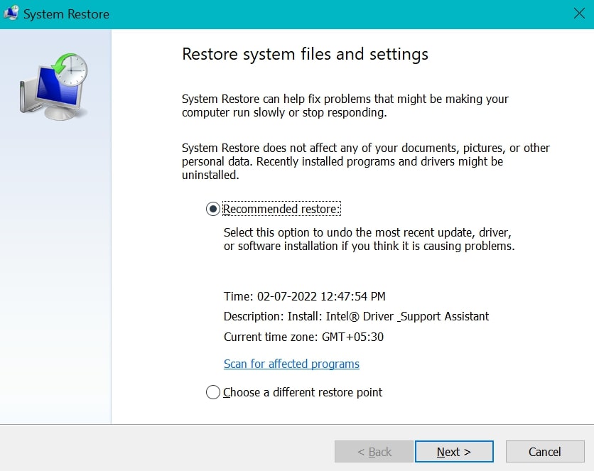 Nëse problemi juaj ende nuk është rregulluar, atëherë opsioni i fundit është të ktheni sistemin tuaj në një pikë ku gjithçka funksionon mirë.