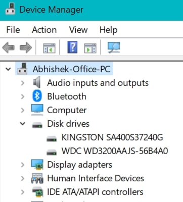 Kjo do të hapni dritaren Menaxheri i pajisjes në kompjuterin tuaj. Zgjero Disk Disqet dhe më pas kliko me të djathtën në disqet tuaja HDD/SSD. Tani, klikoni te Propertiesdhe shkoni te Politikat tab.